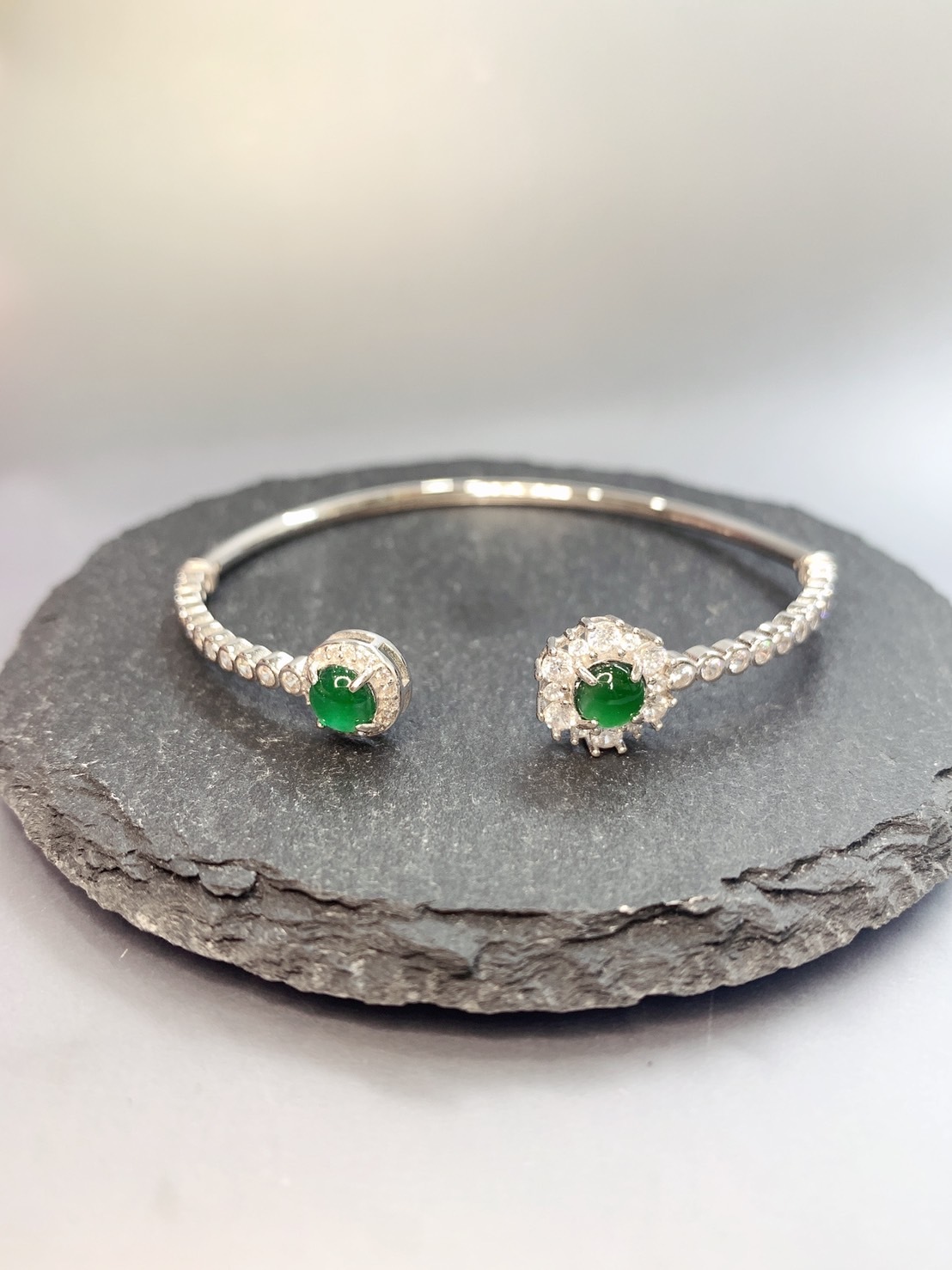 1. 主石:嚴選瓜地馬拉料,高等級冰種綠貨翡翠,起剛光與膠感