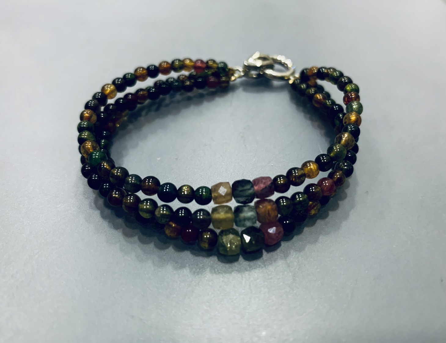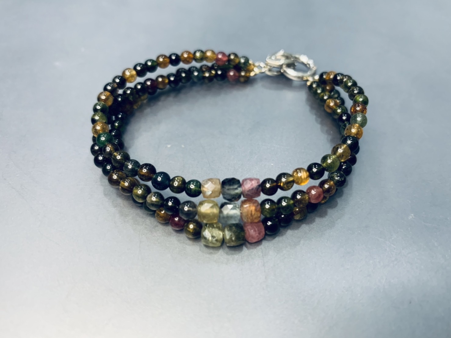2. 搭中央透體彩色碧璽,方塊多角切面珠,約4mm