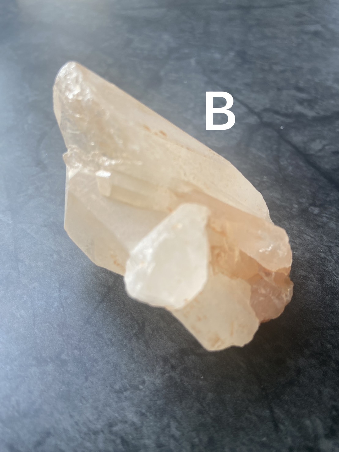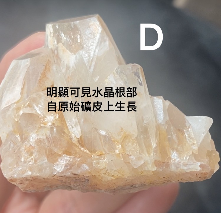 D款:天然小晶簇,含稀有根部礦皮,明顯可見白水晶生長根部,尺寸約4高*3*4.5寬 cm