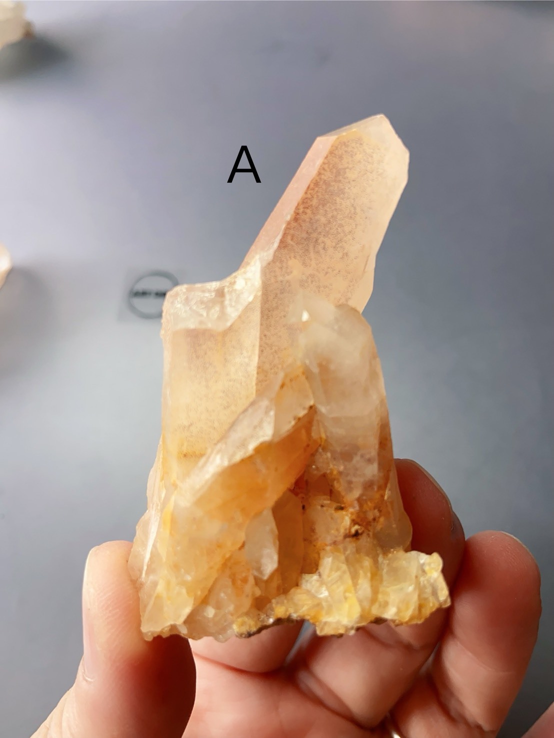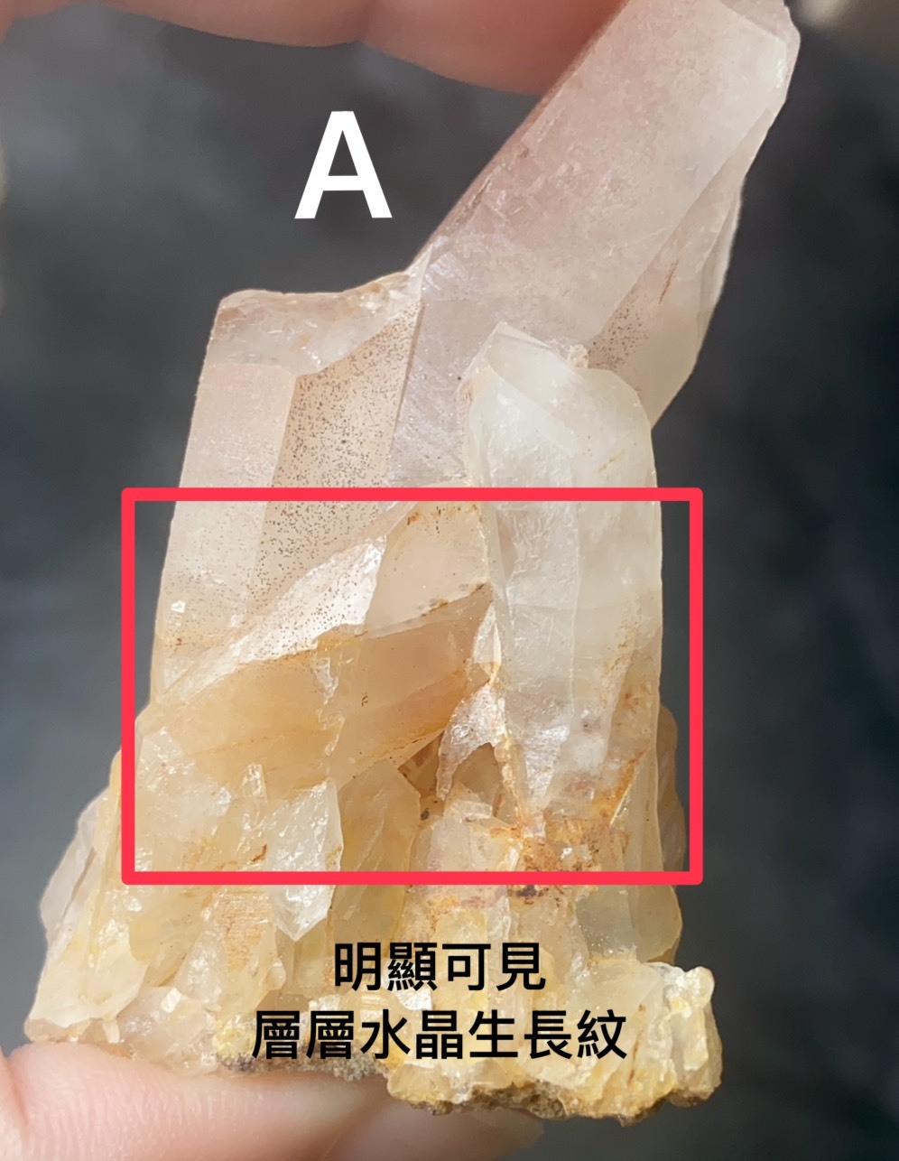 B款:天然2大主要晶柱,共生紅黃幽晶礦皮,夾著共生2-3個可愛小小晶柱與礦體,尺寸約5.8公分高*4*2.8 cm