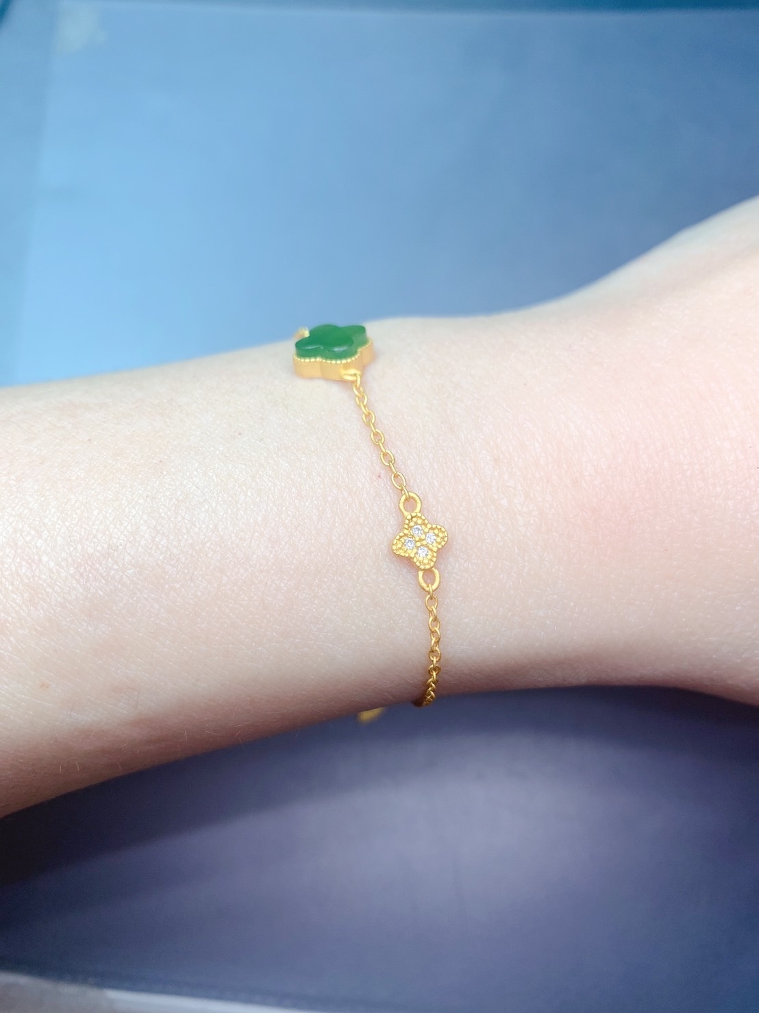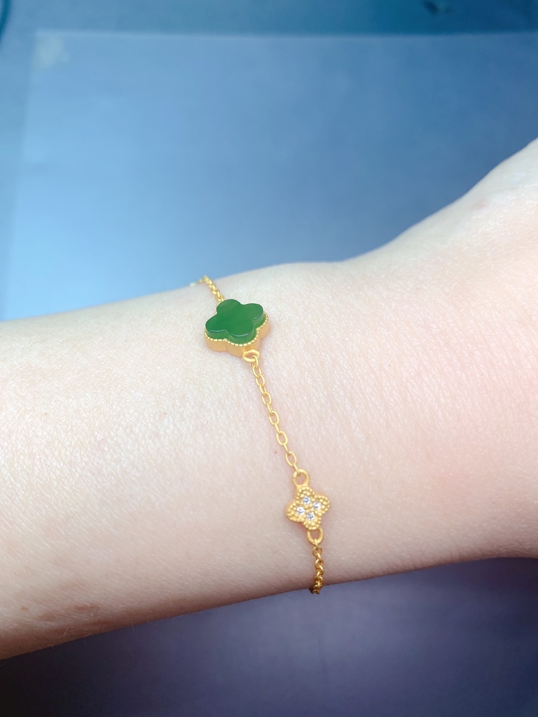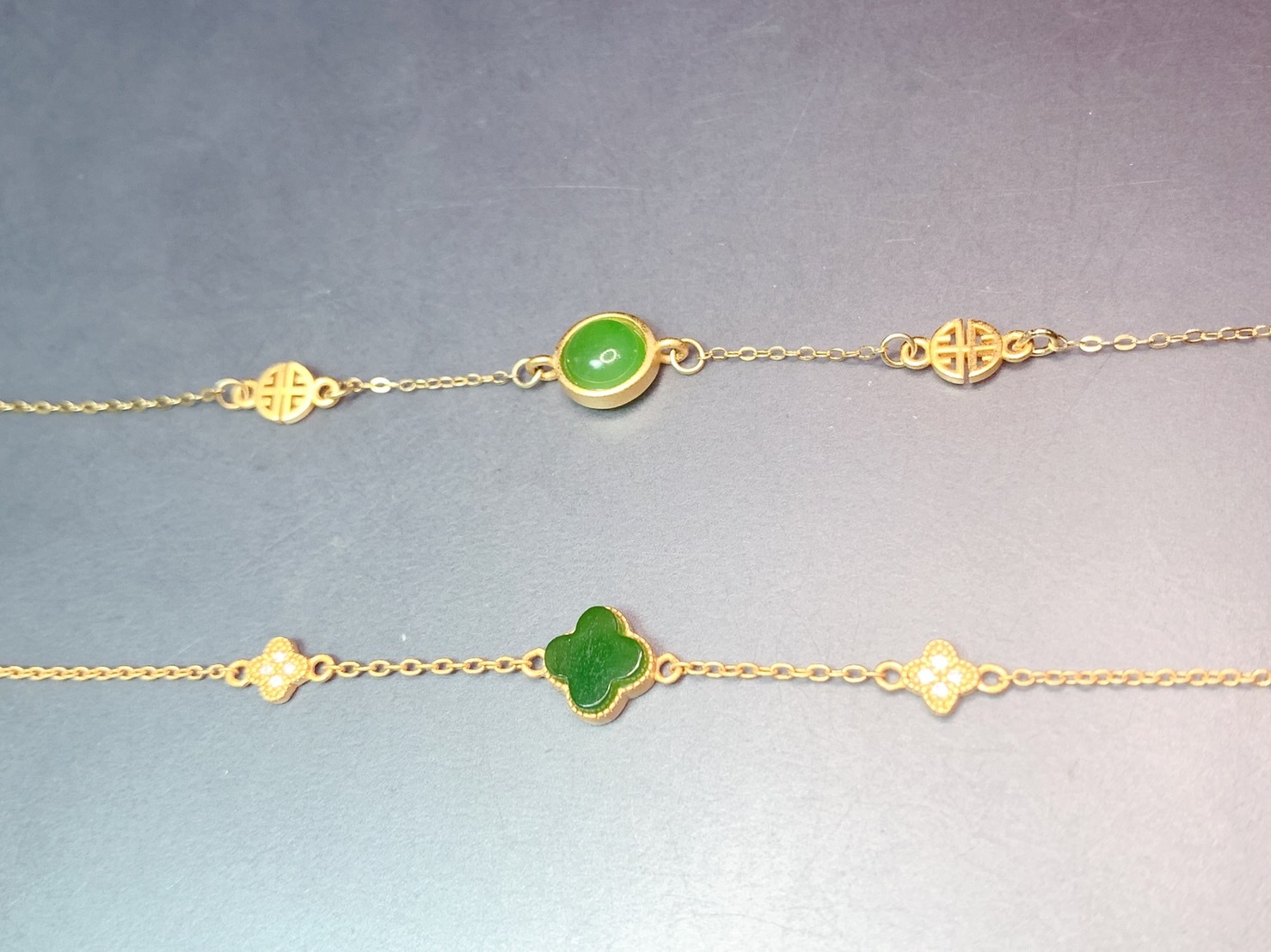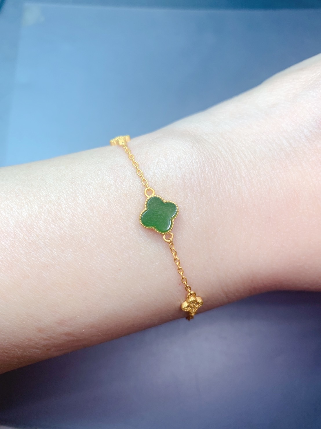 1. 主石:嚴選高等級和田白碧玉,正陽綠玉種,四葉草切割,約9mm