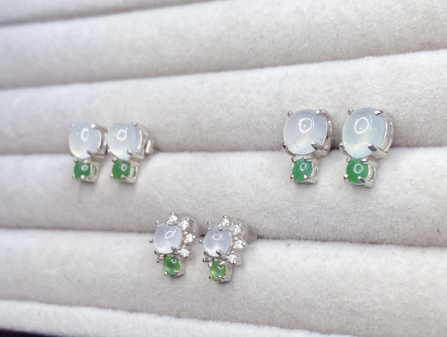 A款:主石白冰翡翠橢圓珠約 4*6mm,搭 3mm小綠珠,簡鑲款