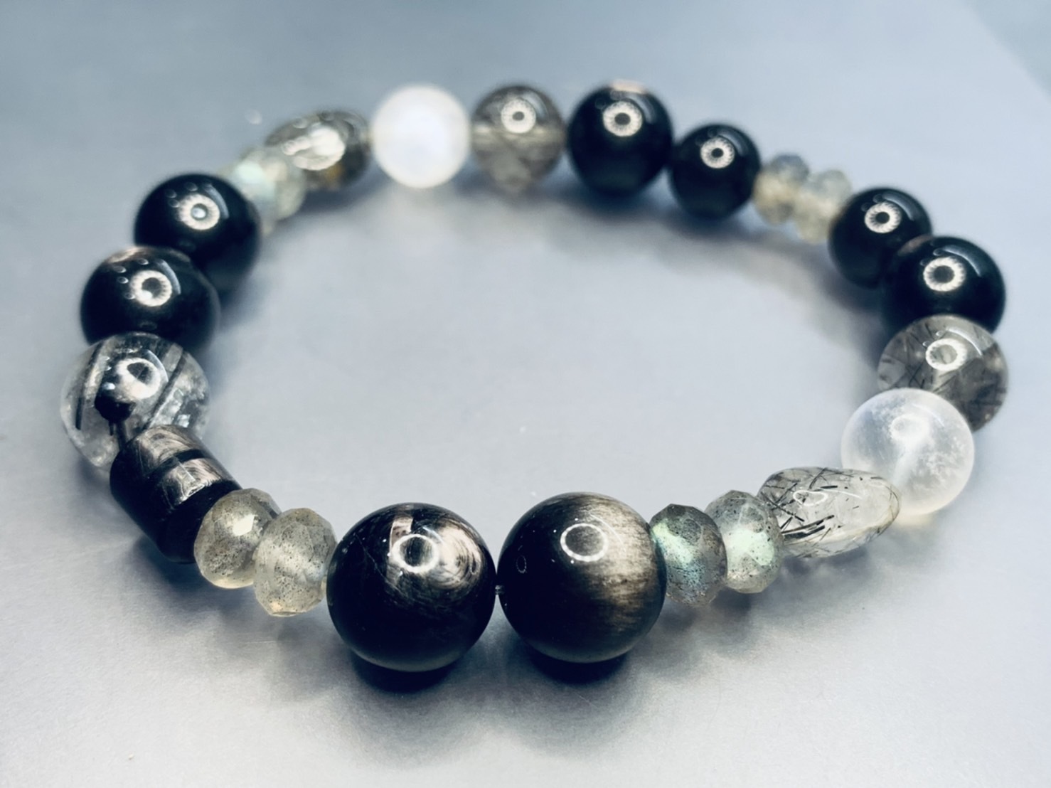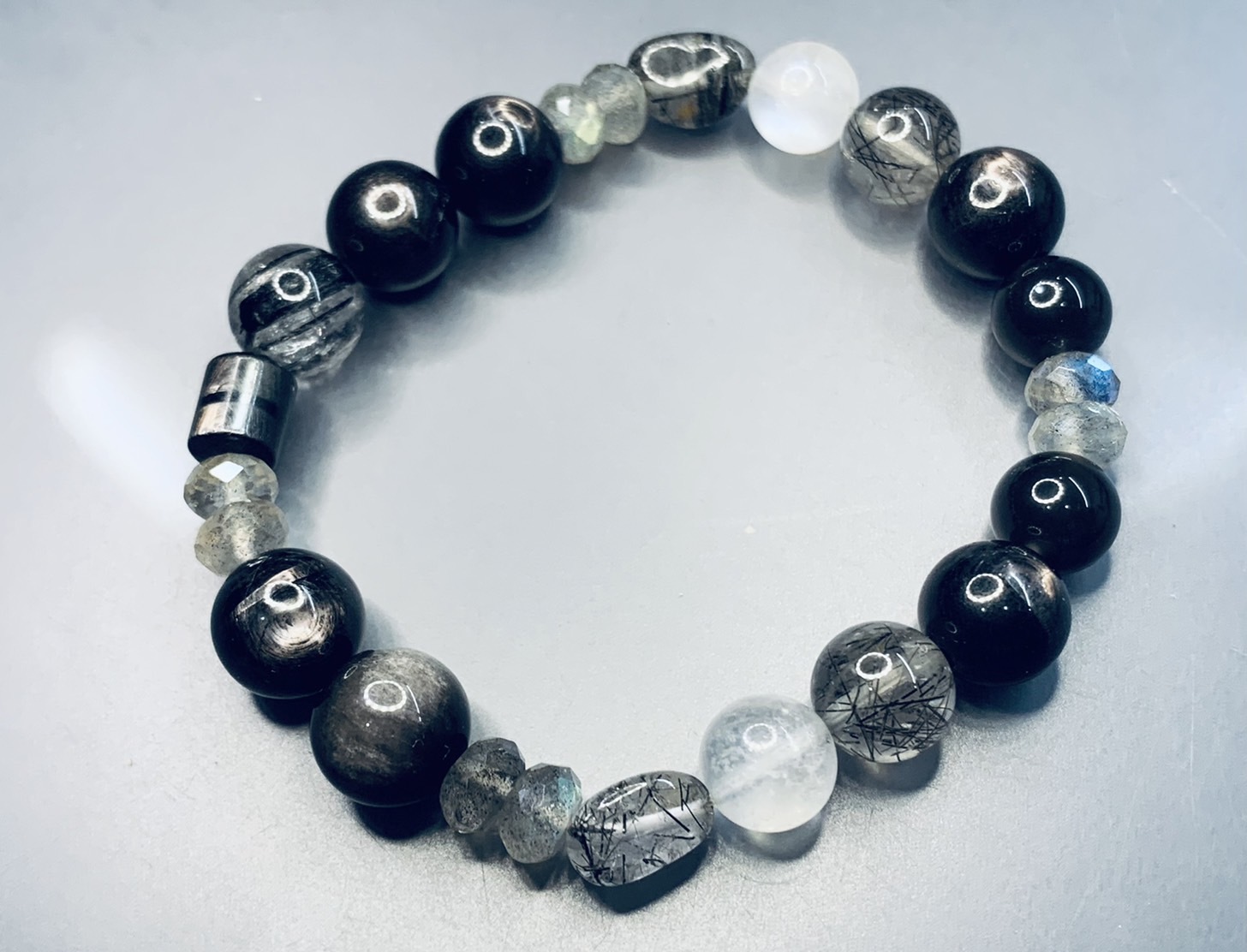 銀黑曜石呈如貓眼般銀白色光